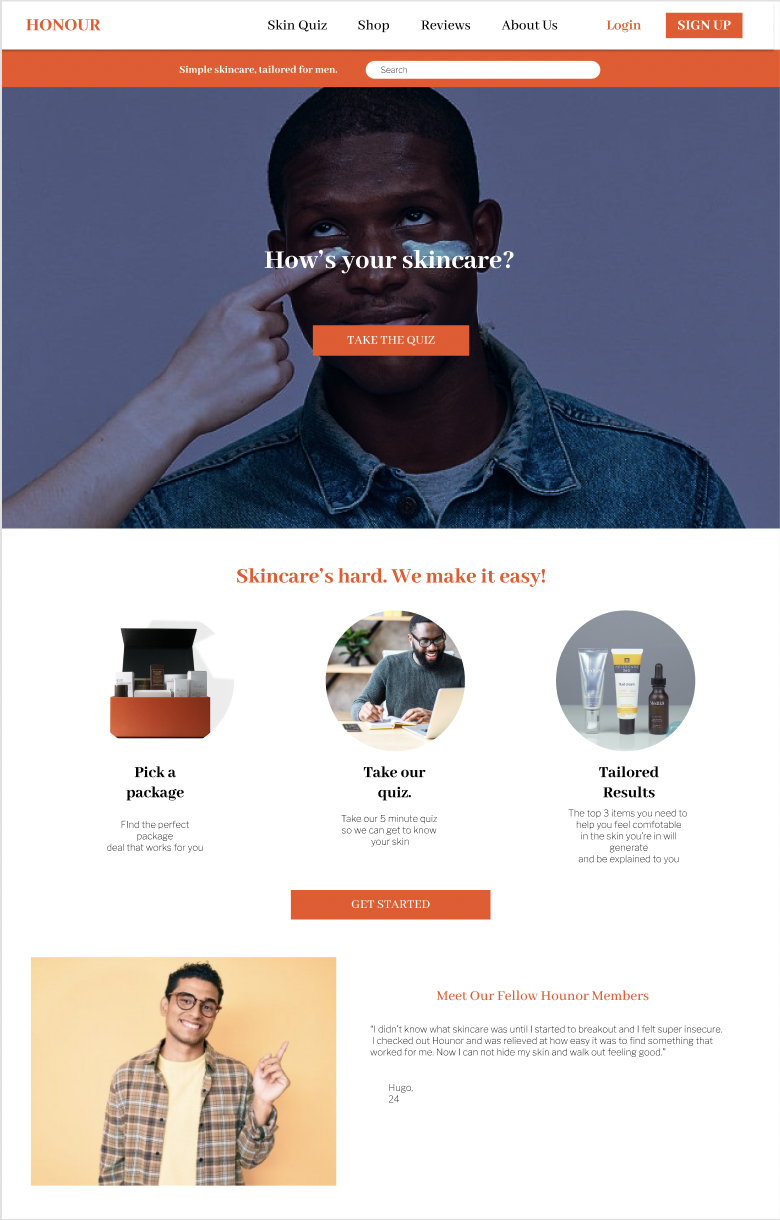 HONOUR, a platform catered to men to help them find a realistic skin care routine best fit for their skin type, budget and time, along with the products selected for purchase; Honour is a website that brings forth knowledge and education to what skincare is and its benefits.