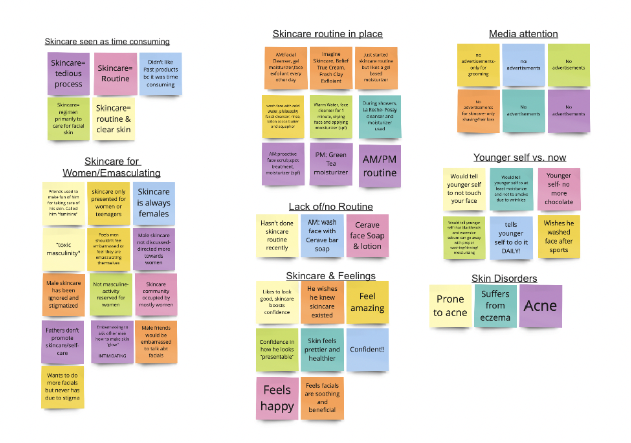 Areas of concern that frequently arose in my interviews revolved around the stigma of skincare only pertaining to women and their needs.