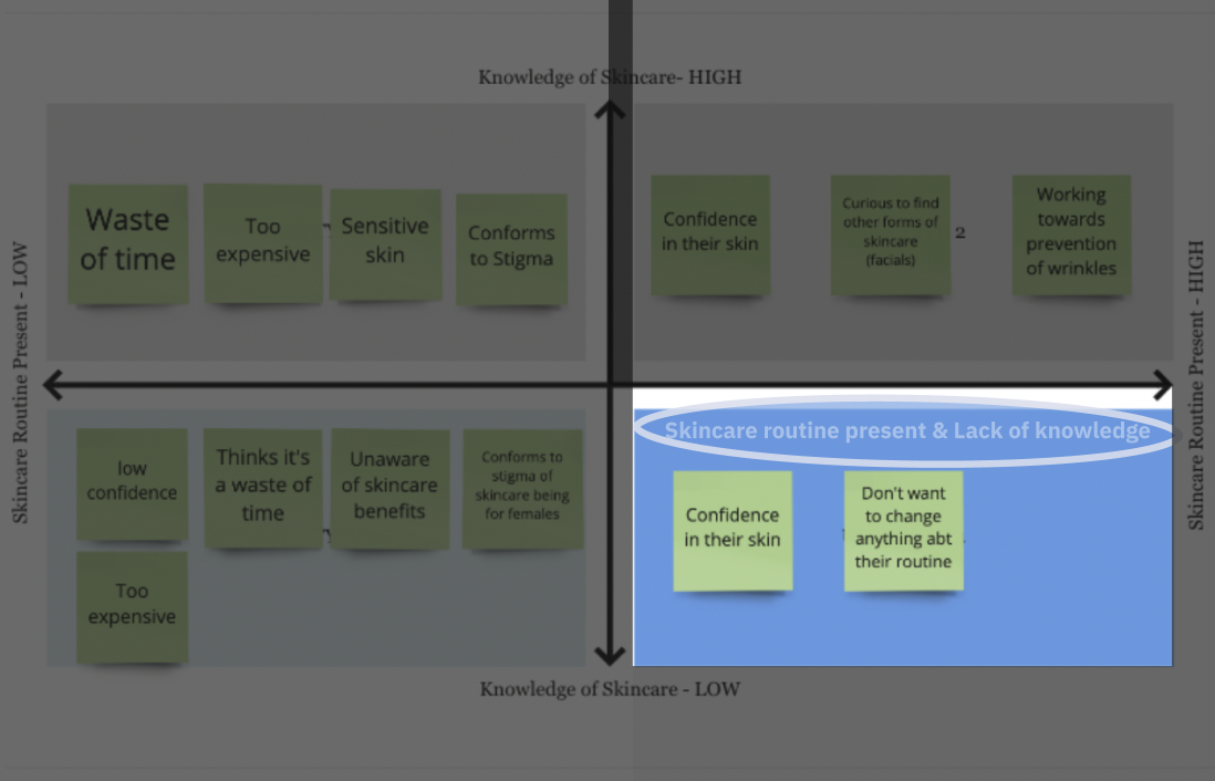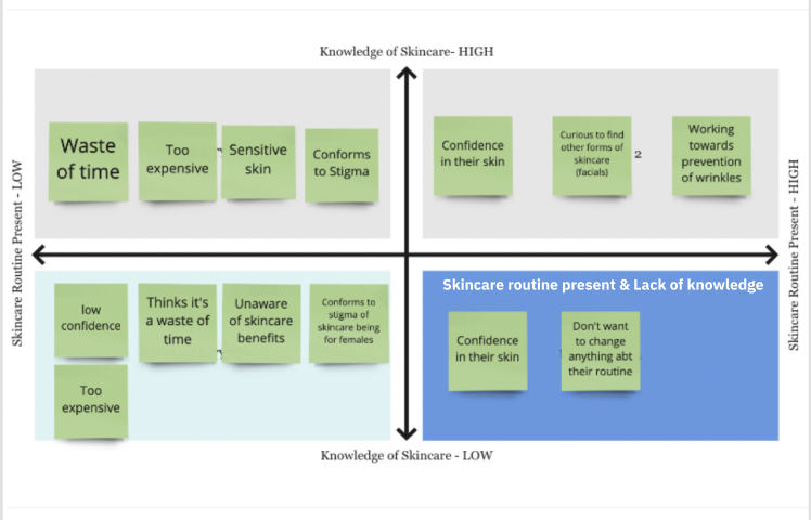 My immediate thoughts/questions following the discovery interviews were what can be done to support men and their skincare and how can we remove the fear and stigma behind skincare for men?